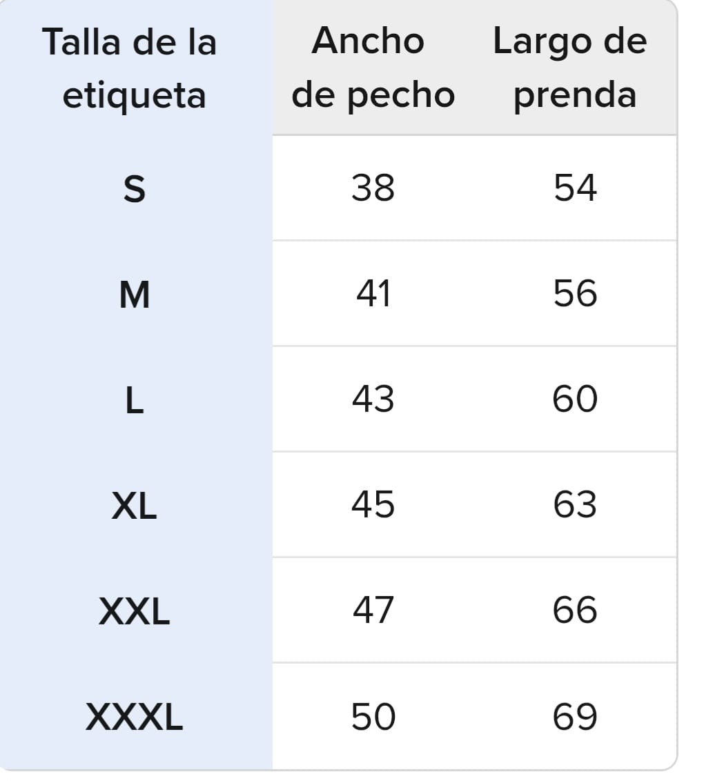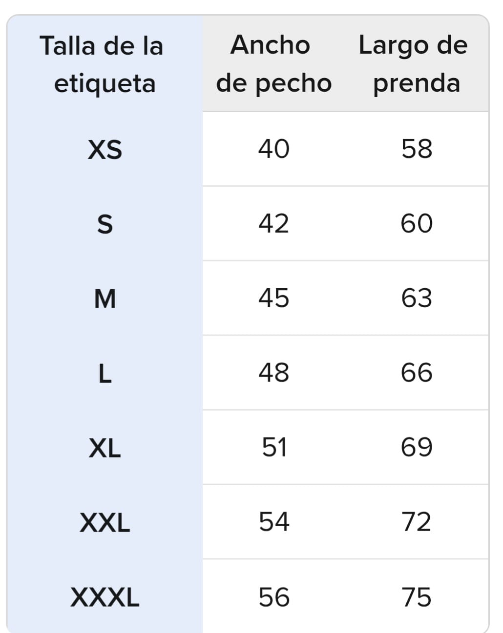EL ancho esta medido de axila a axila y el largo desde la intersección del cuello con el hombro hasta abajo